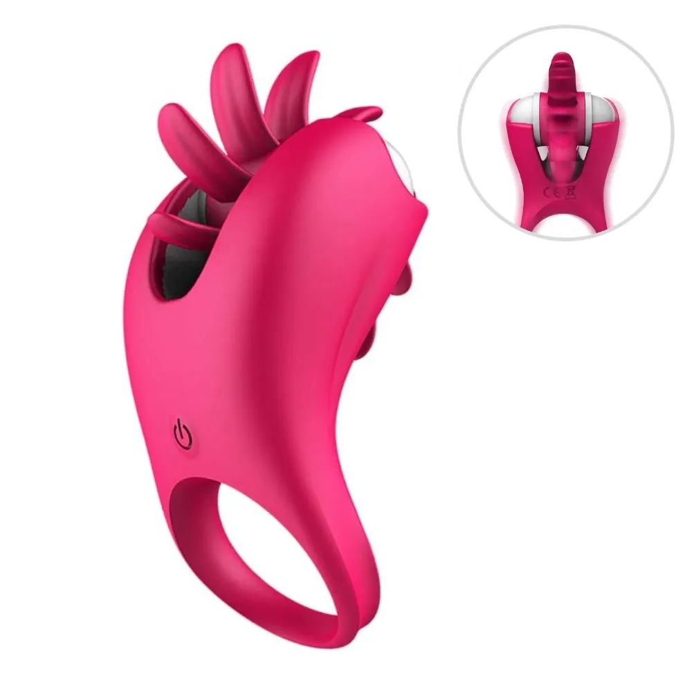Şarjlı Klitoris Uyarıcı Penis Halkası 360° Dönen Dil Hareketli Titreşimli Penis Yüzüğü