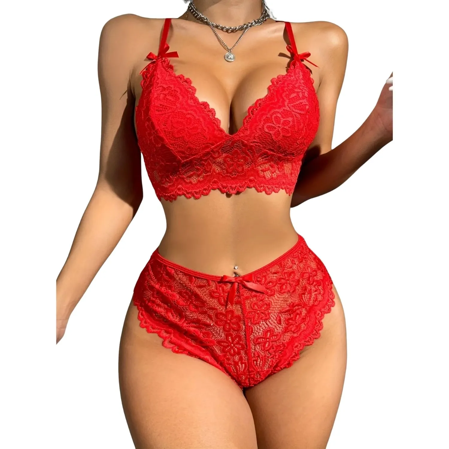 Sens Erotik Ateş Kırmızı Seksi Dantel ve Fiyonklu Arka Kısmı Kalp Şekilli Açık Fantazi Alt Üst Takım